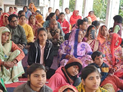 खरगूपुर के झालीधाम आश्रम में आयोजित कार्यक्रम में मौजूद लोग। - संवाद