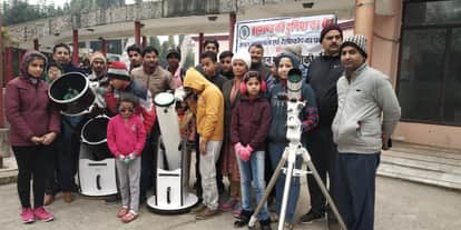 नक्षत्रशाला में टेलीस्कोप से देखा गया सूर्यग्रहण
