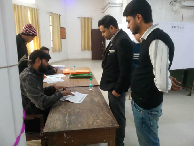 फोटो 20 एचएएमपी 36- जनपद न्यायालय सभागार में वोट डालते अधिवक्ता। संवाद