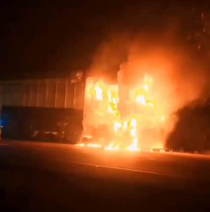 फोटो14एचएएमपी-09ट्रक में लगी आग। संवाद