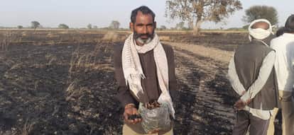 फोटो 12 एचएएमपी 26- उमरी गांव में जली गेहूं की बालियां दिखाता किसान। संवाद