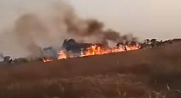 फोटो 12 एचएएमपी 18- अतरैया में खेतों में लगी आग को बुझाते किसान। सोशल मीडिया