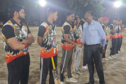 फोटो 06 एचएएमपी 14- राठ में नाइट क्रिकेट टूर्नामेंट में खिलाड़ियों से परिचय लेते मुख्य अतिथि । स