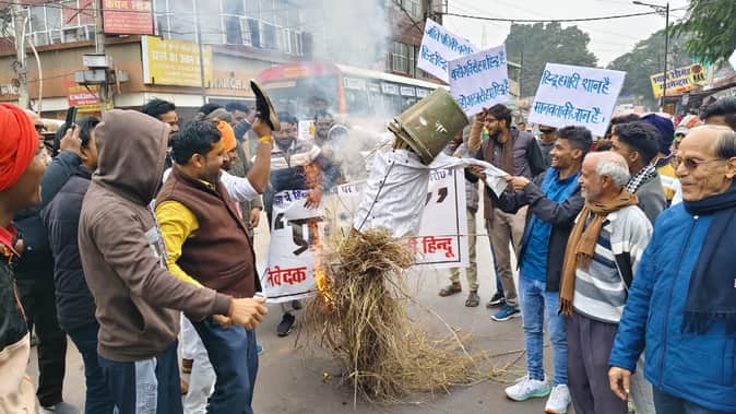 रविवार को शहर के बस अड्डे पर प्रदर्शनकारी बांग्लादेश के प्रधानमंत्री का पुतला लेकर पहुंचे। यहां पर आक्रोश जताते हुए पुतला को लात जूतों से पीटा, इसके बाद आग के हवाले कर दिया। प्रदर्शनकारियों का कहना था कि कुछ समय पहले दीपू चंद्र दास को उन्मादी भीड़ ने पीट पीट कर मार डाला। विरोध प्रदर्शन के दौरान रोशन रावण, अजय गुरू, अश्विनी भदौरिया, बच्चू महाराज, कल्लू बाजपेई, रमाकांत शुक्ला, अनादि मिश्रा, ब्रजेश गुप्ता आदि मौजूद रहे। (संवाद)