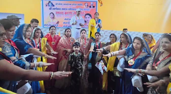 राठ (हमीरपुर)। स्वर्णकार समाज धर्मशाला के संस्थापक राजरानी रामचरन के जन्मोत्सव पर स्वर्णकार समाज की ओर से सोमवार को नगर में शोभा यात्रा निकाली गई थी। देर शाम समाज की महिला मंडल पदाधिकारियों को चुनाव प्रवेक्षक विजय सोनी ने शपथ दिलाई है।