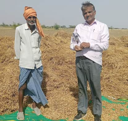 फोटो 12 एमएएचपी 11 परिचय-गहरा के किसान अर्जुन सिंह की चने की अंकुरित फसल का मुआयना कर जानकारी ल