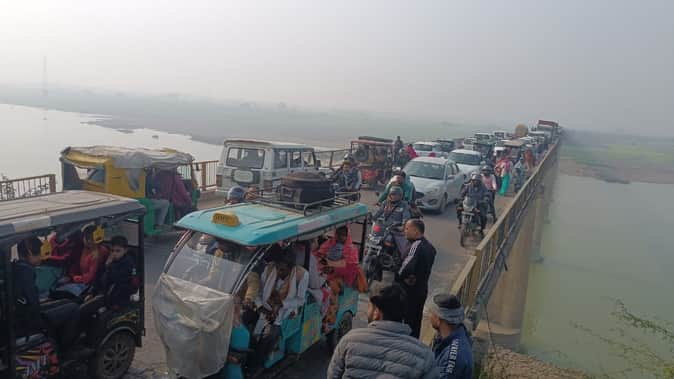 , हलकान यात्री बस से उतरकर पैदल ही चले गंतव्य की ओरकानपुर-सागर हाईवे पर 15 किलोमीटर लगा जाम