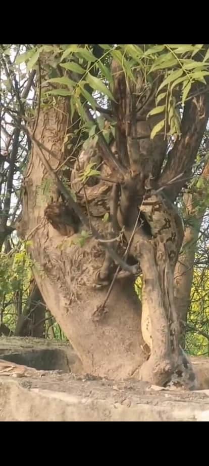 Hamirpur News: नीम के पेड़ में लिपटे दो अजगर देख ग्रामीण भयभीत
