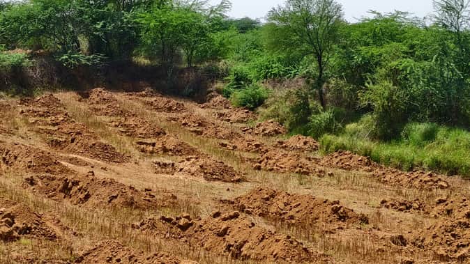 फोटो 08 एचएएमपी 10- खेतों में वन विभाग द्वारा खोदे गए गड्ढे। संवाद
