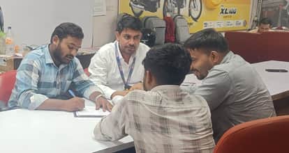 दिल्ली रोड स्थित टीवीएस बाइक के शोरूम पर बाइक की खरीदारी करने पहुंचे ग्राहक। संवाद