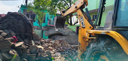 Hapur News: सेहल में गरजा बुलडोजर, तालाब की जमीन से पक्का निर्माण ध्वस्त कराया