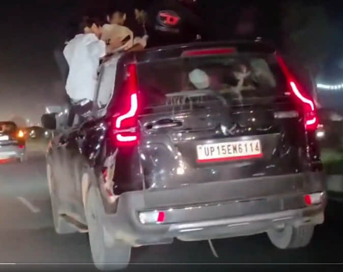 यातायात उप निरीक्षक नरेश कुमार ने बताया कि कार का नंबर जनपद मेरठ का है। सोशल मीडिया पर वायरल हो रहे वीडियो के आधार पर कार्रवाई करते हुए सात हजार रुपये का चालान किया गया है। उन्होंने बताया कि इसके अलावा दो अन्य कारों की खिड़कियों पर बैठकर कुछ युवक स्टंट कर रहे थे।