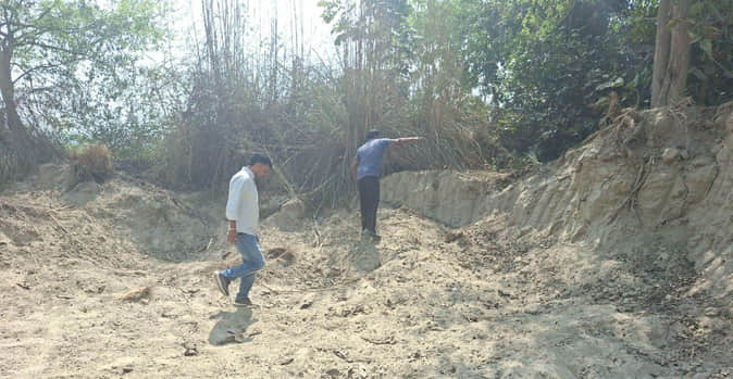 सिंभावली क्षेत्र के गांव खुडलिया के जंगल में तेंदुए के निशान तलाशते वन विभाग के कर्मी। स्रोत वि