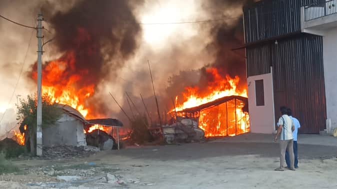 UP Fire News: हापुड़ के पिलखुवा में झुग्गियों में लगी भीषण आग, ऊंची-ऊंची लपटों से सहम गए लोग
