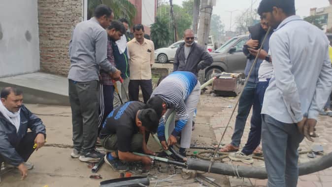 दिल्ली रोड पर हुए बिजली के फॉल्ट को सही करते विद्युत कर्मी। संवाद- फोटो : स्रोत : विभाग