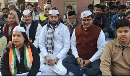 फोटो-23-तिकुनिया पार्क में उपवास पर बैठे कांग्रेस जिलाध्यक्ष विक्रम पांडेय व अन्य। संवाद