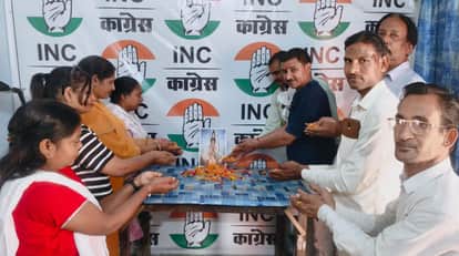 फोटो 18: कांग्रेस कार्यालय पर भगवान परशुराम के चित्र पर पुष्पांजलि अर्पित पदाधिकारी-कार्यकर्ता