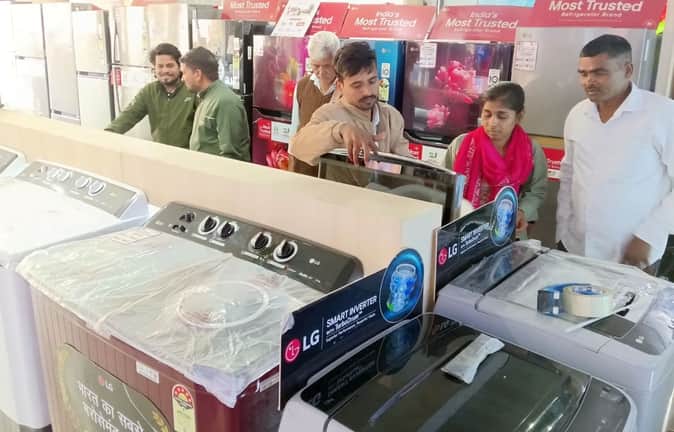 फोटो-14- इलेक्ट्रॉनिक शोरूम पर खरीदारी करते लोग। संवाद