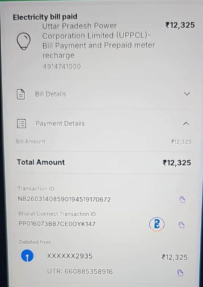 फोटो- 26- उपभोक्ता का ऑनलाइन मोड में जमा किया गया बिजली बिल। संवाद