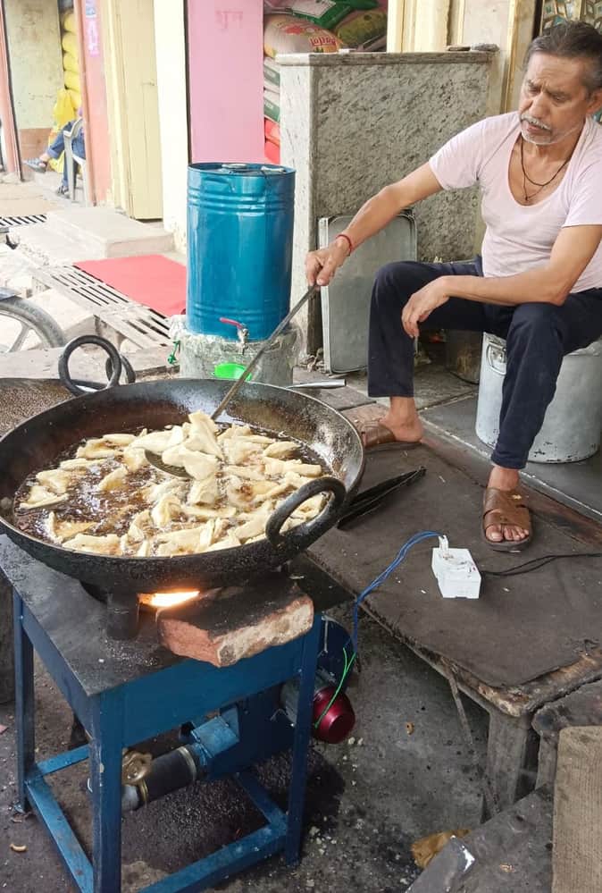 फोटो-06- डीजल भट्टी पर समोसे बनाता कारीगर। संवाद