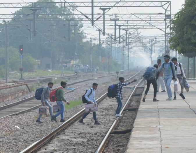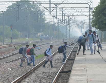फोटो-22-रेलवे ट्रैक पार करते यात्री। संवाद