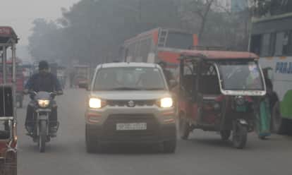 फोटो-01- कैनाल रोड पर सुबह छाई धुंध में जाते वाहन। संवाद