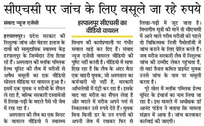 Hardoi News: जांचों का शुल्क लेने पर लैब टेक्नीशियन से स्पष्टीकरण तलब