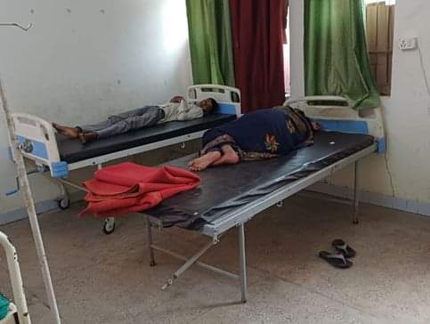 फोटो- 23- सवायजपुर स्थित सीएचसी पर बिना चादर बिछे बेड पर भर्ती मरीज। संवाद