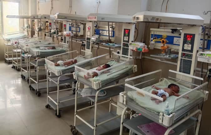 फोटो- 08- एसएनसीयू में भर्ती नवजात बच्चे। संवाद
