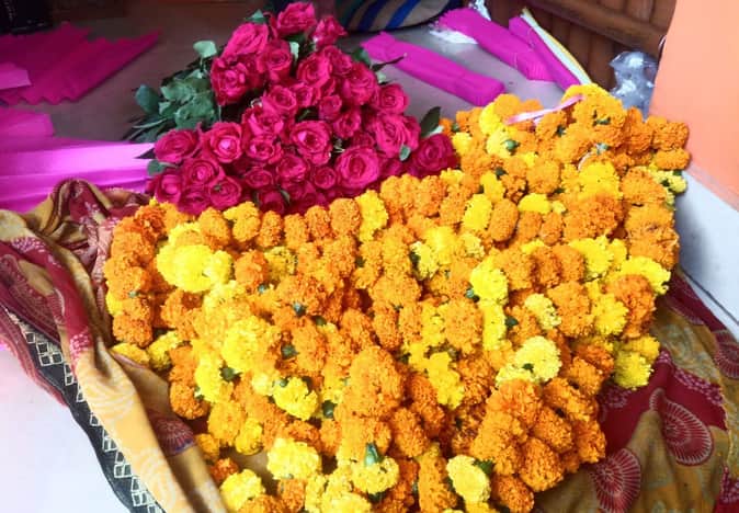 फोटो-26-दुकान पर बिक्री के लिए रखे फूल। संवाद