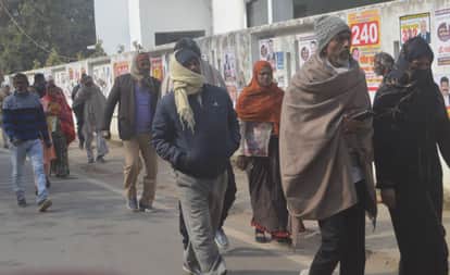 फोटो-02- सर्दी में ठिठुरते जाते लोग। संवाद