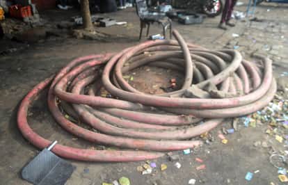 फोटो-03- लखनऊ रोड पर पड़ी विद्युत केबिल। संवाद