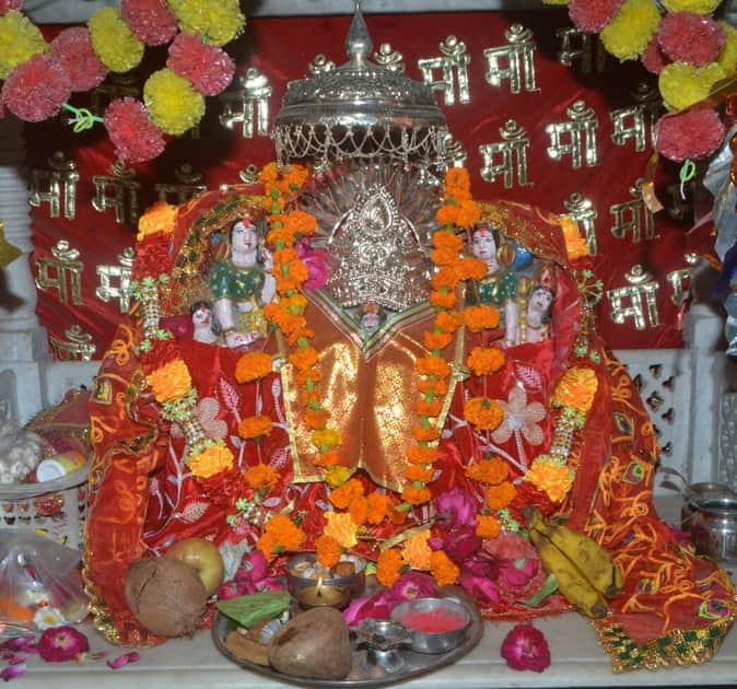 फोटो-01- श्रवण देवी मंदिर में अष्टमी पर्व पर सजी माता रानी की मूर्ति। संवाद