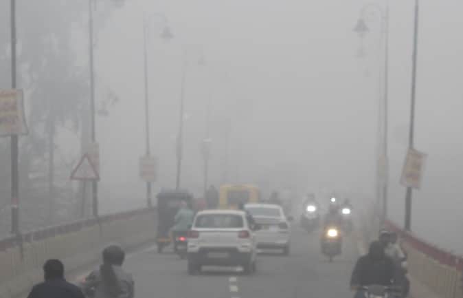 कोहरे में लाइट जलाकर गुजरते वाहन। संवाद