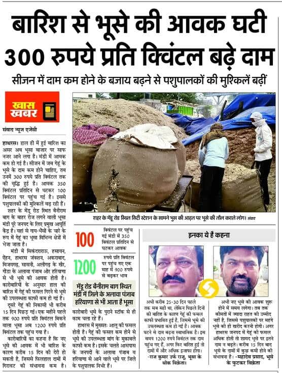 Hathras News: हाथरस से बाहर भूसा ले जाने पर लगी रोक