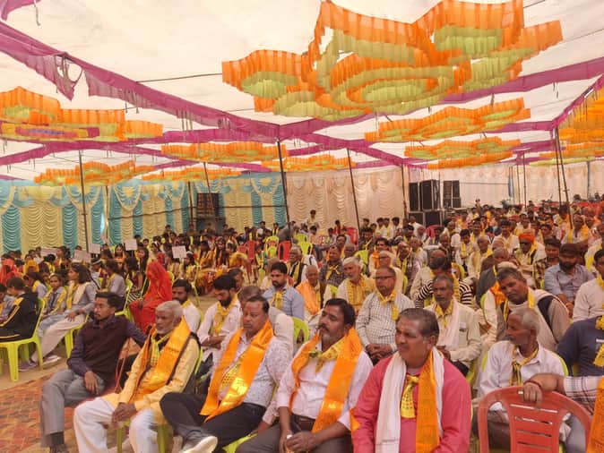 बाजिदपुर में आयोजित हिंदू सम्मेलन में मौजूद लोग। संवाद