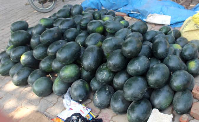 आगरा रोड पर बिकते महाराष्ट्र के तरबूज। संवाद