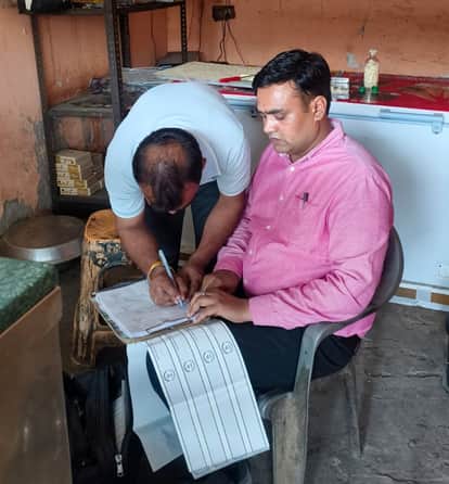 नमूना भरने के बाद हस्ताक्षर कराते अधिकारी। स्रोत : विभाग