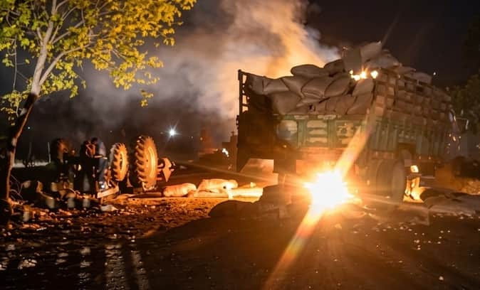 गांव गंंगौली में आग लगाने के बाद जलता ट्रैक्टर। संवाद