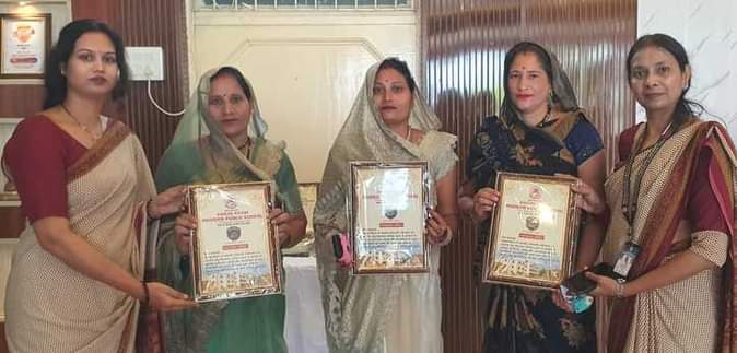 फोटो- 23 माताओं को सम्मानित करता विद्यालय स्टॉफ। स्रोत विद्यालय