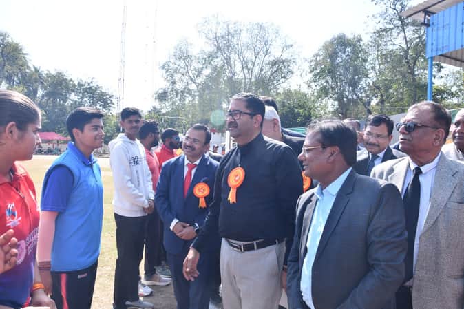 फोटो-35-खिलाड़ियों से परिचय लेते न्यायमूर्ति सौरभ श्रीवास्तव। संवाद
