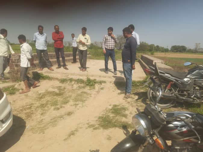 फोटो-25-तरसौर रजवाहे पर किसानों के साथ नहर विभाग के अधिकारी। स्रोत-ग्रामीण