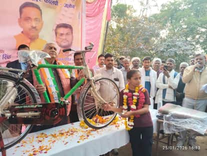 कालपी। राष्ट्रीय छात्रवृत्ति योजना की परीक्षा में जिले में दसवां स्थान प्राप्त करने वाली नौवीं कक्षा की मेधावी छात्रा खुशी दीक्षित को क्षेत्रीय विधायक विनोद चतुर्वेदी ने सम्मानित किया। इस दौरान छात्रा को विद्यालय आने-जाने के लिए साइकिल भेंट की गई।