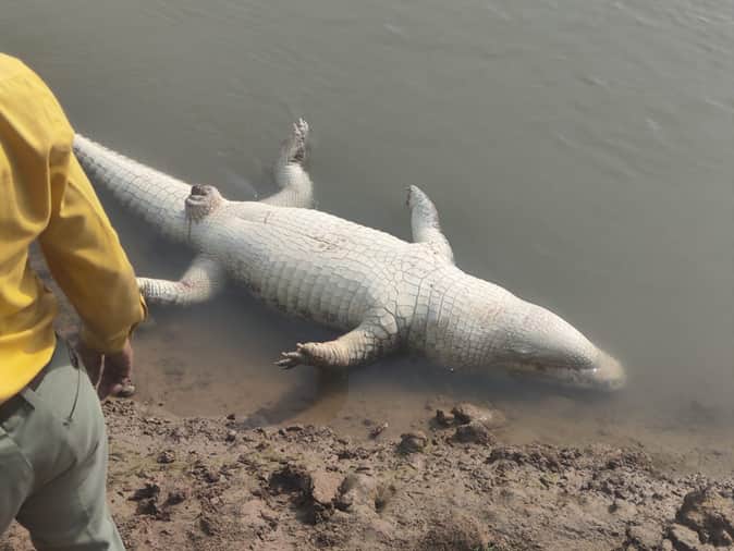 Jalaun News: पहूज नदी में मरा मगरमच्छ मिलने से हड़कंप