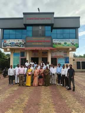 फोटो- 04 पुणे के कान्हेवाड़ी गांव में पंचायत भवन के बाहर खड़ी एक्सपोजर विजिट करने गई यूपी की टी