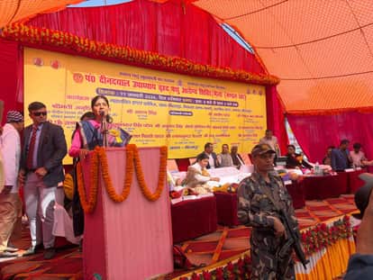 जिगना में बिहसडाकला के महाशक्ति इंटर कालेज में वृहद् पशु आरोग्य शिविर को सम्बोधित करती केंद्रीय
