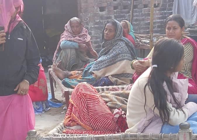 ट्रक से कुचलकर हुई बालक की मौत के बाद शोक में डूबे परिजन। संवाद