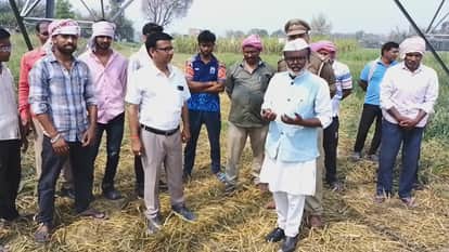 धर्मापुर। जज सिंह अन्ना व किसानों से वार्ता करते बिजली विभाग के एसडीओ शचीन्द्र जायसवाल। स्रोत-स