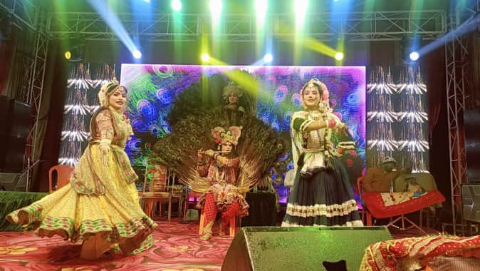 फोटो-- चौकियां धाम में तीन दिवसीय श्रृंगार महोत्सव कार्यक्रम में झांकी की प्रस्तुति देते कलाकार