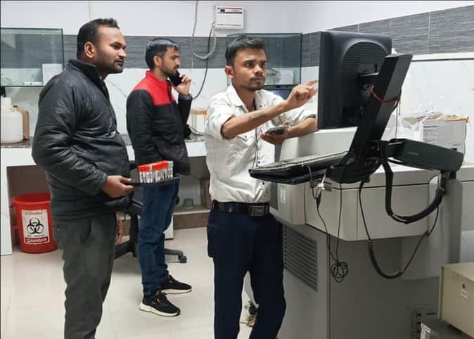 जिला अस्पताल में रिपोर्ट देखते स्वास्थ्य कर्मी। संवाद